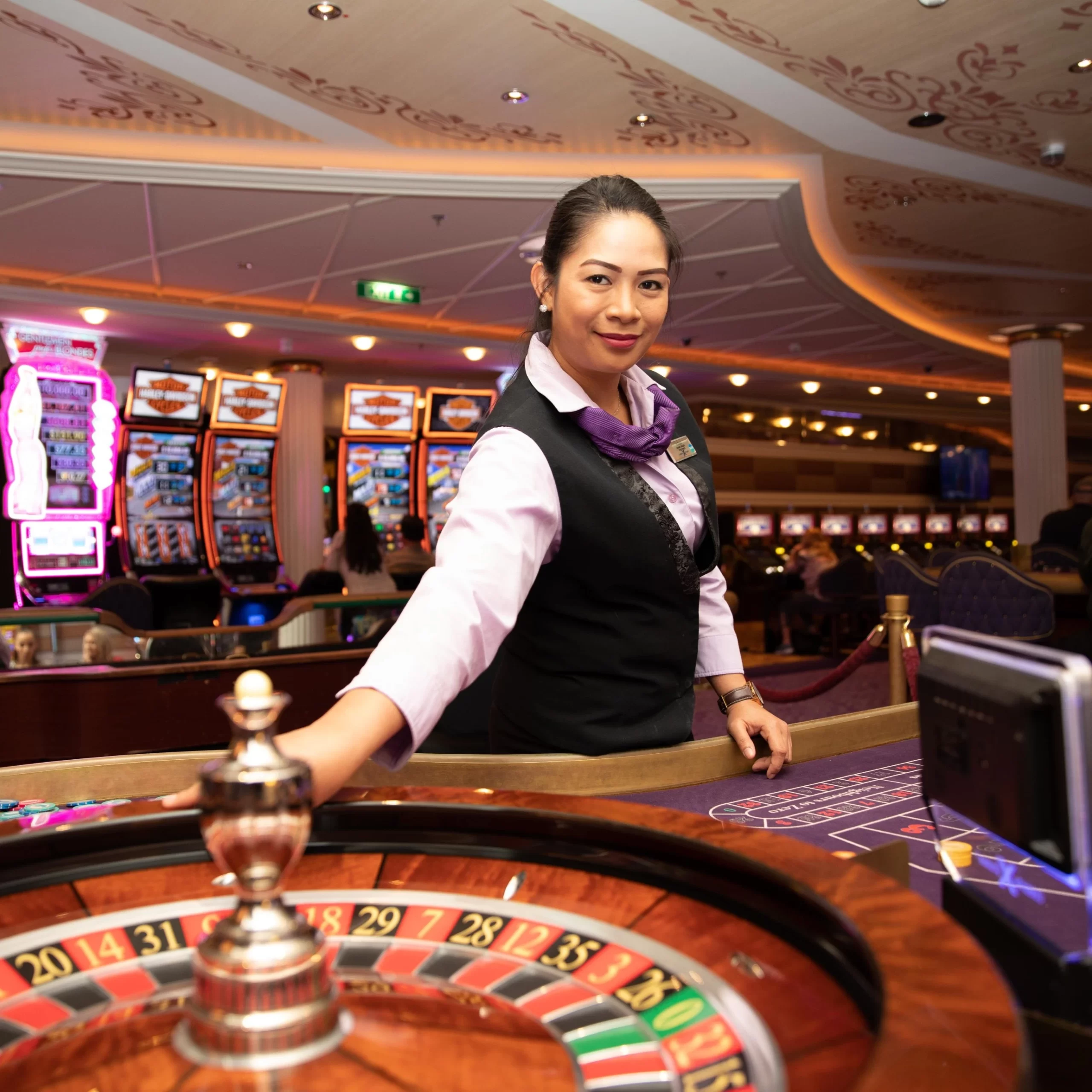 O Casino Dealer tem como principal função operar as mesas de jogos dentro do cassino do navio, garantindo que cada partida ocorra de forma justa, transparente e conforme as regras estabelecidas. Ele conduz jogos como roleta, blackjack, pôquer, craps e outros, sempre mantendo o profissionalismo e o ritmo adequado das partidas. Deve acolher os hóspedes com simpatia, explicar as regras quando necessário e incentivar a participação de novos jogadores.
